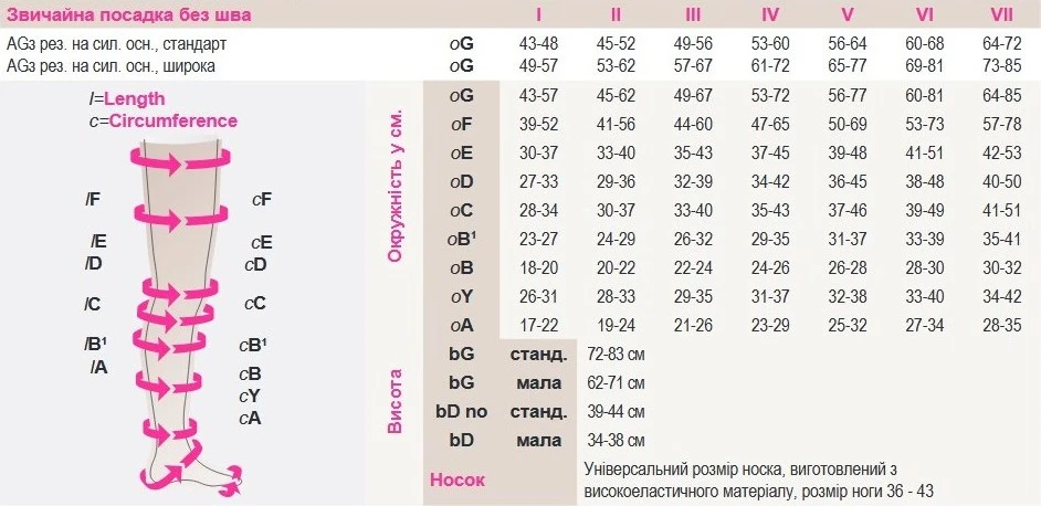 Склад матеріалу 3-го класу компресії: поліамід – 63%, еластан – 37%.