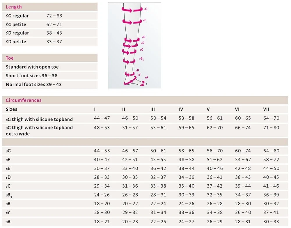 • Технологія Variety - це 3 класу компресії, 8 видів виробів, 7 розмірів з кроком 2 см над щиколотками, 7 модельних рядів. Таке різноманіття вибору дозволяє підібрати підходящий виріб лікувального трикотажу 90-95% пацієнтам, які звертаються за допомогою. В інших випадках можливе виготовлення на замовлення