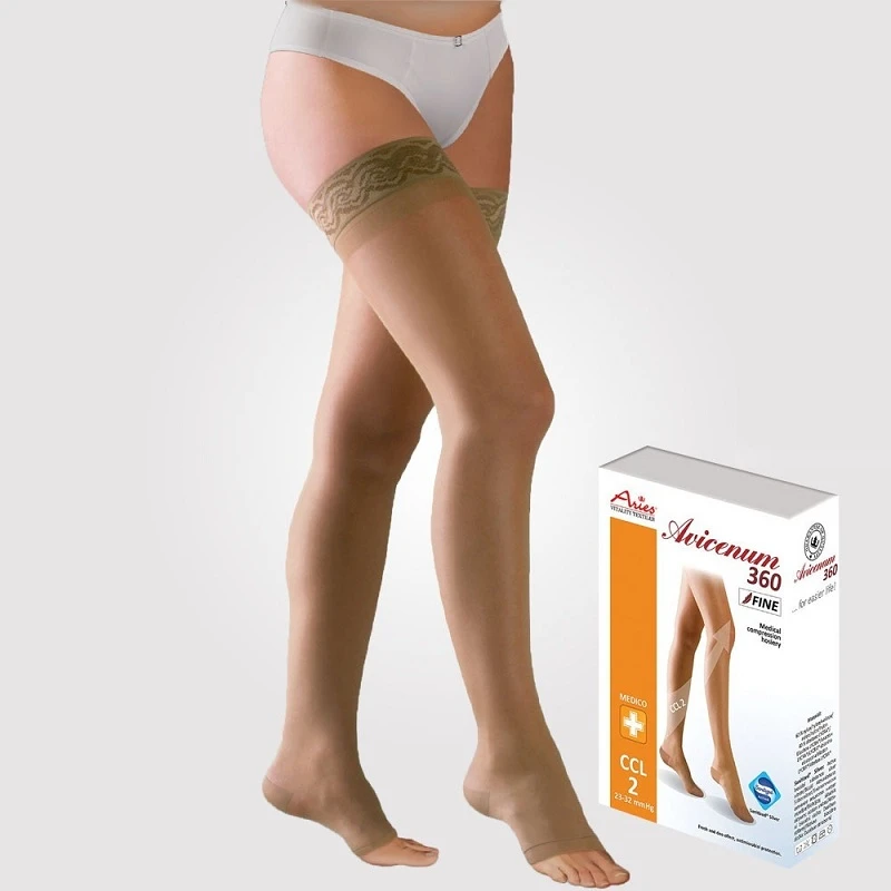 Нові компресійні панчохи Aries Avicenum 360 FINE з мереживом, мають витончену структуру та зручні при носінні. Їх розроблено спеціально для того, щоб жінки могли проходити лікування, залишаючись при цьому привабливими та жіночними. Компресійні панчохи другого класу компресії (23-32мм / рт.ст.) застосовуються при лікуванні варикозної хвороби, терапії після операцій варикозних вен. Завдяки тиску 23-32 міліметри ртутного стовпчика значно звужується просвіт у венах, що прискорює відтік венозної крові. Нормальний кровотік у нижніх кінцівках є запорукою здоров’я венозної системи та всього організму людини.