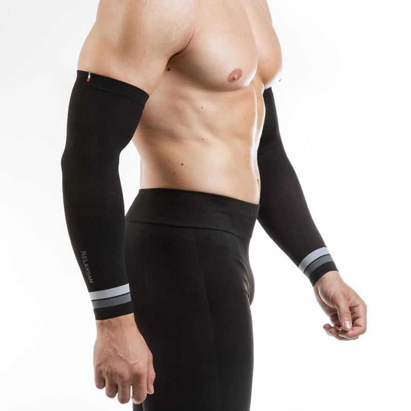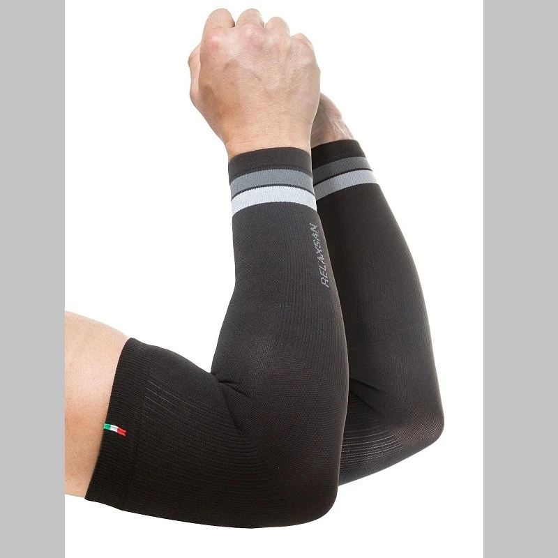 Спортивні компресійні рукава Relaxsan Sport з волокном Dryarn Компресія стимулює кровообіг і дає приємне відчуття підтримки та стабілізації м'язів без затискання чи здавлювання, запобігає розривам. Ергономічна конструкція має посилене плетіння для поглинання та обмеження ударних вібрацій. Підходить для всіх видів спорту в будь-яку пору року завдяки управлінню теплом та вологістю, заснованому на терморегулюючому, гідрофобному та ультра-дихаючому волокні Dryarn.