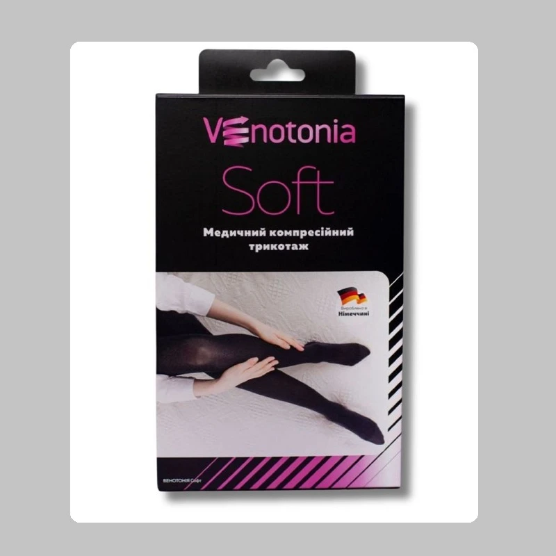Компресійні панчохи Venotonia Soft (Венотонія Софт) є медичним виробом з доведеною ефективністю і призначені для лікування захворювань вен ніг: варикозного розширення вен, хронічної венозної недостатності, також для попередження ускладнень.