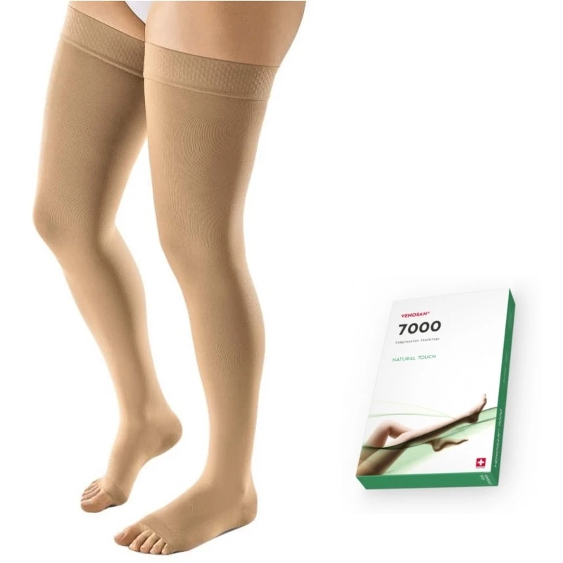 Компрессионные медицинские чулки VENOSAN® 7003 с эластичной резинкой 3 класса компрессии (34-42 мм рт.ст). Для лечения венозной патологии, сопровождающейся трофическими язвами и отеками нижних конечностей. Уникальный состав ткани позволяет рекомендовать эти изделия больным с нейродермитами. Страна производитель: Швейцария.
